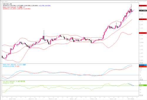 技术层面上,周内黄金维持高位震荡周五美盘走出大幅的冲高回落周线报收一根带长上影线的阳线。黄金目前在日线走出一波放量的冲高回落,仅从RSI技术指标方面观察,似乎有形成顶背离之嫌,近期须警惕黄金出现进一步获利回吐性调整下落的风险。下方须重点关注2331和2320的支撑,若跌破,回调幅度将会加大。相反,若金价经调整仍能紧紧撑持在上述水平之上,那黄金后市继续刷新高纪录的可能性也是可期盼的。