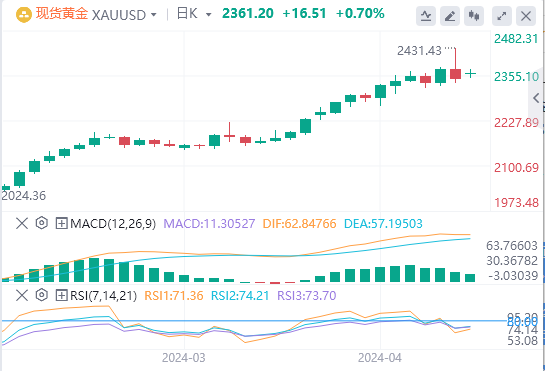 伊朗周六对以色列发动的报复性无人机袭击令市场感到恐慌,并重新点燃了金价的安全吸引力,因为投资者仍然担心伊朗对以色列发动的史无前例的袭击是否会引发更广泛的地区冲突。