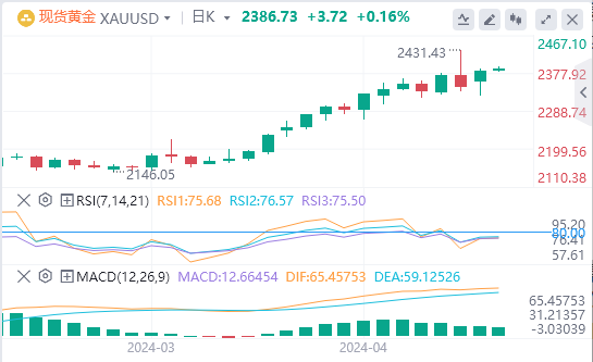 4月16日,周二亚市早盘,黄金徘徊在2386.73附近。