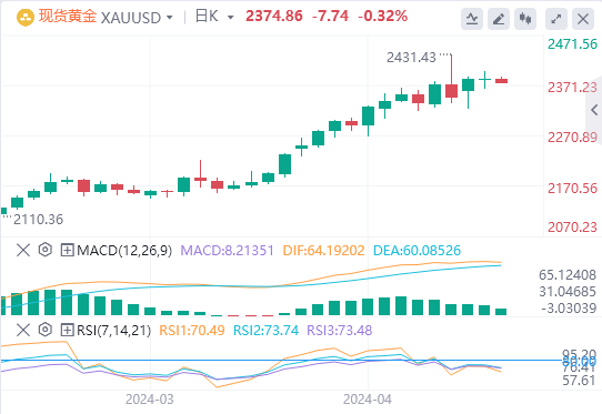 金价在前日收跌后,于周三早盘在2,400美元下方展开争夺。美元跟随美国国债收益率小幅回调,等待新一批美联储决策者讲话,金价再次试图夺回2,400美元的水平。