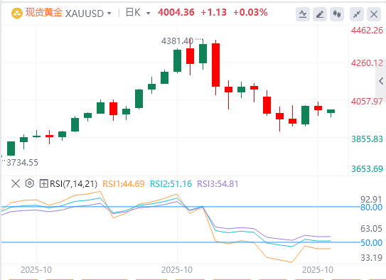 上周五,现货黄金震荡下行,并在美盘时段跳水,盘中一度大跌超1%,随后收复部分失地,重回4000美元关口附近,截至目前,黄金报价4004.36。