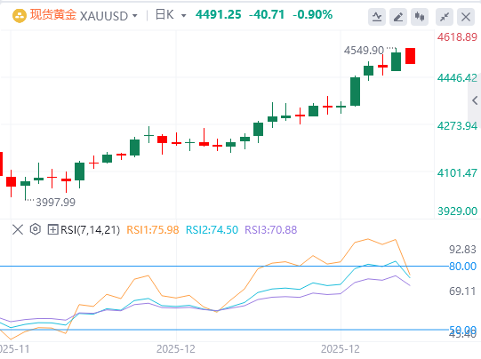 12月29日,周一亚市盘中,黄金徘徊在4491.20附近。