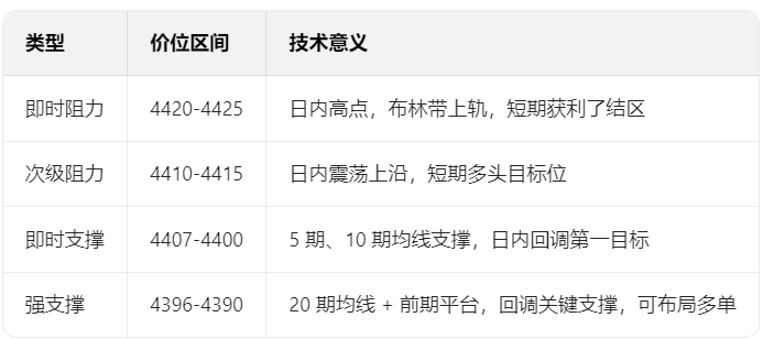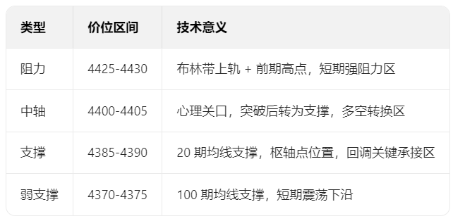 技术回调风险:跳空高开后存在缺口回补需求,4380-4390区域是回调第一目标