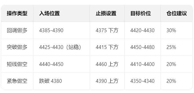 回调至4385-4390区域是理想多单入场点,止损需严格控制在4375下方