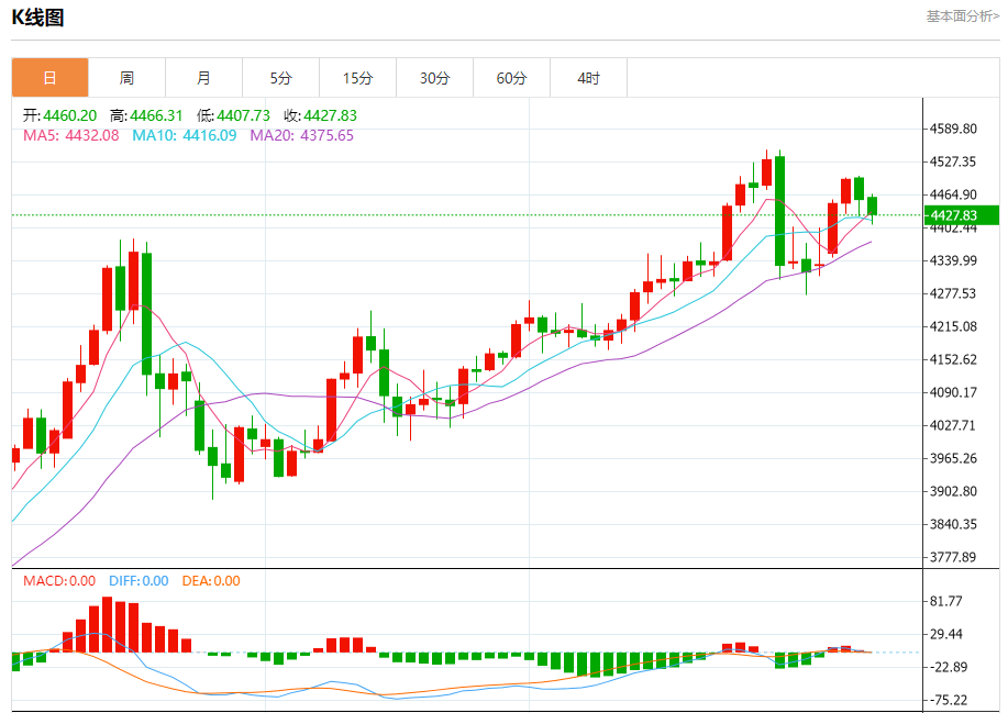 技术分析:4500美元限制上行,多头捍卫4450美元支撑位