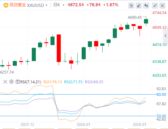 1月19日,黄金在欧洲盘前半段保持盘中上涨,目前交易位置略低于本周一早些时候触及的历史高点,背景是基本面支持。美国总统唐纳德·特朗普威胁要对反对他收购格陵兰计划的八个欧洲国家征收新关税。这一宣布引发了欧洲官员的强烈批评,并引发了对更广泛跨大西洋贸易争端的担忧。这与地缘政治风险的加剧一起,引发了全球风险规避交易的新一波浪潮,促使投资者寻求传统避险资产,并以此作为贵金属的基础。