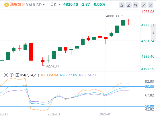 1月22日,黄金在盘中从4773-4772美元区间稳健反弹的基础上继续攀升,并在周四欧洲早盘攀升至新的日内高点。美元(USD)难以利用前一天的积极走势,因为美国美联储(Fed)预计2026年将再降两次利率,而这又被视为对这种非收益黄金的推动力。