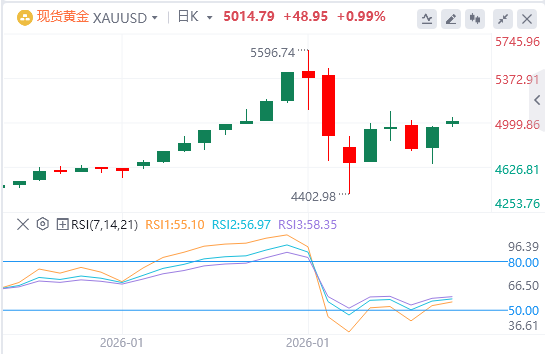 2月9日,黄金在5000美元附近整固最新的上涨,买家加快步伐,准备迎接关键周的持续上涨。