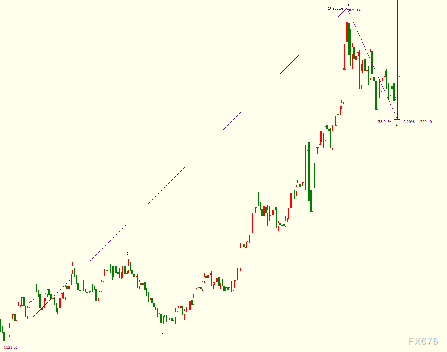 小时图上看,现货黄金自1783美元开启上行(iii)浪走势,上方近期阻力看向61.8%目标位1818美元和76.4%目标位1826美元。(iii)浪是自1760美元开启的上行((i))浪的子浪。((i))浪则隶属于同样自1760美元开启的上行5浪。周线上看,5浪的14.6%目标位1899美元。