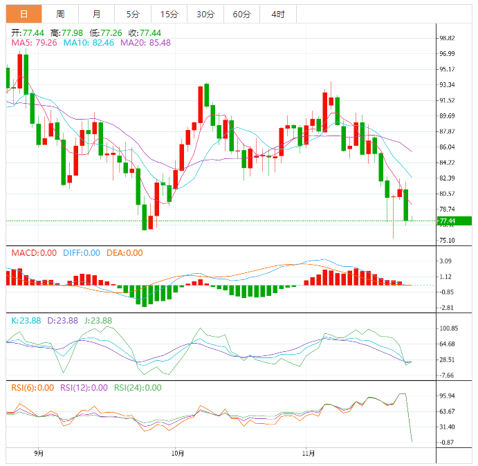 在这种情况下,原油仍有可能反弹至每桶80美元的通道顶部,或者试图突破高点实现逆转。