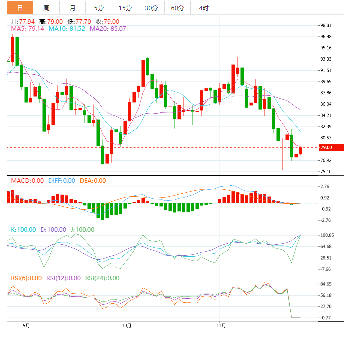 WTI原油在4小时时间框架内横盘移动,在每桶76.85美元附近找到支撑,在每桶93.70美元附近找到阻力。原油价格目前正在测试支撑位,可能会再次反弹。