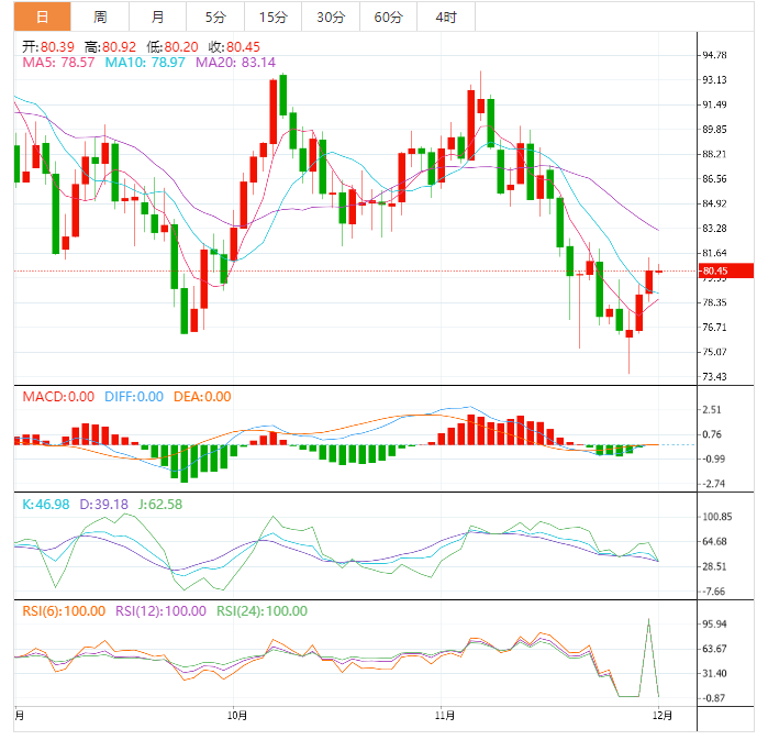 美国能源情报署(EIA)周三公布截至11月25日当周石油库存大幅下降后,黑金价格大涨。美国能源情报署(EIA)显示,美国石油库存减少了1258万桶。这是官方石油库存报告显示的石油库存连续第三次下降。