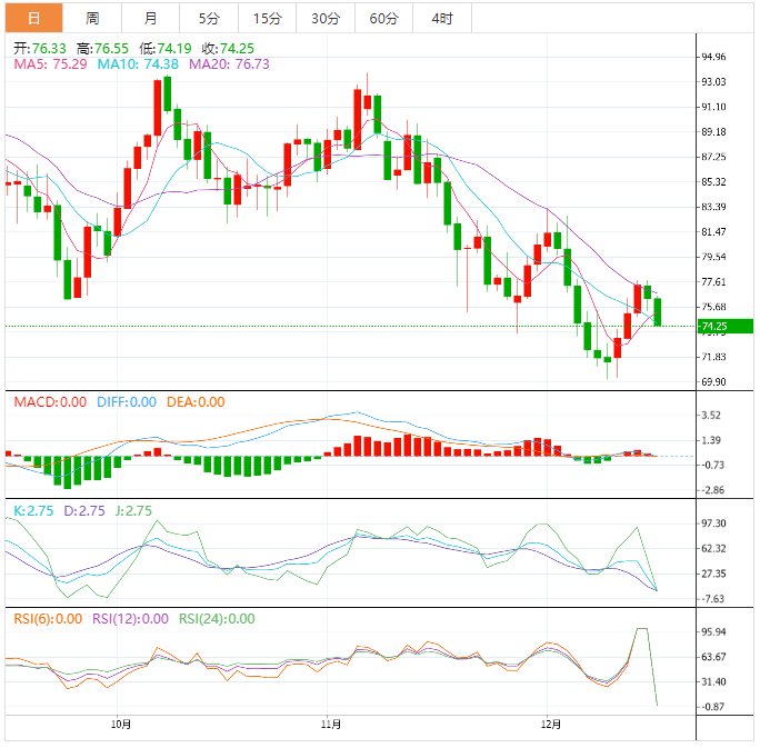 38.2%的水平为每桶72.81美元,接近中线区域。更强的抛售压力可能会将油价拉低至50%,至每桶71.29美元,或61.8%,至每桶69.77美元。
