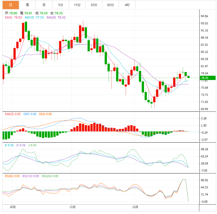 WTI原油在经历了两天的下跌趋势后,周四早些时候保持在78.80美元附近的低位,因为原油空头寻求更多线索,以在假期期间延续最新的下跌走势。