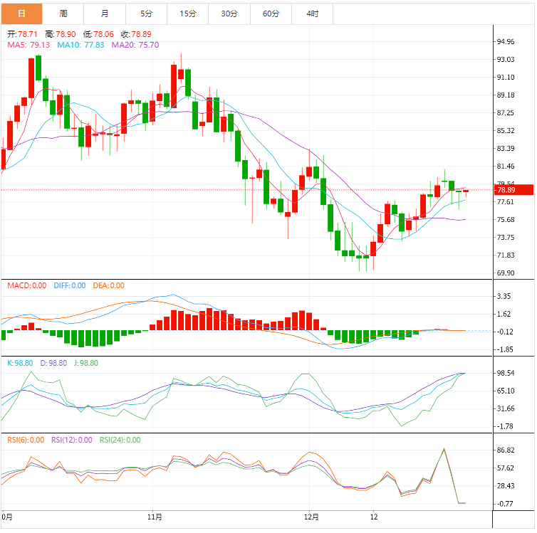 然而,12月初的支撑位转为阻力位线,最晚接近79.65美元,在80.00美元的整轮数字之前,限制了能源基准油价的即时上行空间。