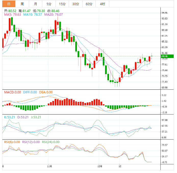 如果是这样,原油价格可能会跌回每桶80美元左右的通道底部,再次测试支撑。这与200移动均线的动态支撑相一致,这增加了其作为底部的力量。