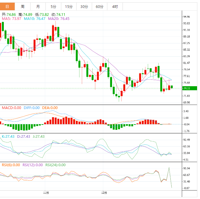 38.2%的水平接近每桶73.14美元,而50%的扩展为每桶72.06美元,与波动低点一致。