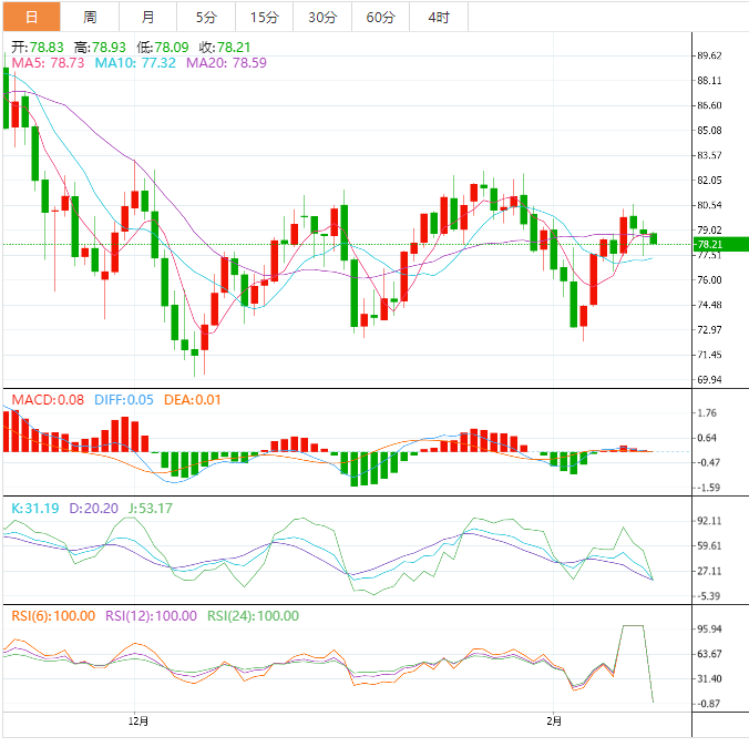 尽管周一未能突破100日移动均线令WTI空头回想起,但在接近50日移动均线支撑位(截至发报时接近77.70美元)时,报价的进一步下行似乎难以捉摸。