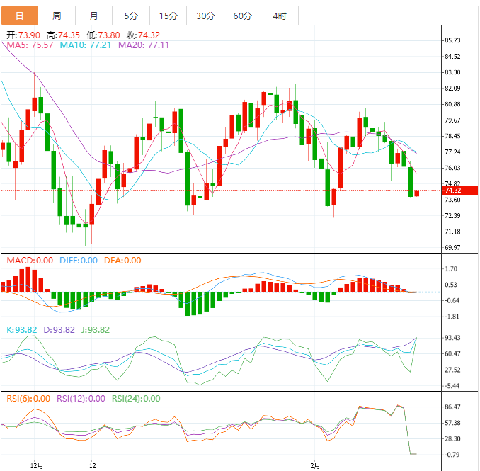 WTI正在以4小时为单位形成头肩图,这表明长期盘整的瓦解。上述图表形态的右肩形成正在进行中,一个完整的形成将支持更多的油价空头。图表形态的领口是从1月5日的低点72.64美元开始绘制的。