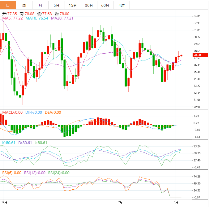 或者,在上述上周五延伸的支撑线之外,回调走势似乎并不引人注目,最晚接近77.25美元。