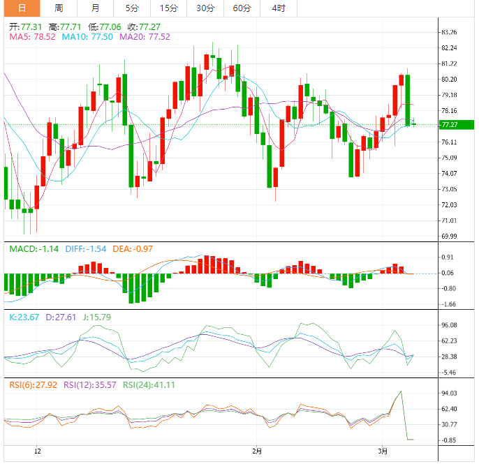 周三盘中,WTI原油在每小时的时间框架上呈上升趋势,但在本周早些时候测试其上升的通道阻力时价格大幅抛售,原油价格已跌至每桶78美元的通道支撑位。