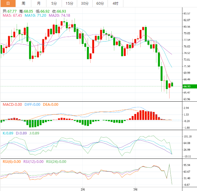 周二亚洲时段,美油交投于66.93美元/桶附近;油价周一在触及15个月最低后反弹并收高近2%,尽管市场担心全球银行业的风险可能引发经济衰退,从而削弱燃料需求;但俄罗斯3月石油减产不明显,且美股上涨提振了油价,市场关注即将发布的美联储利率决议。