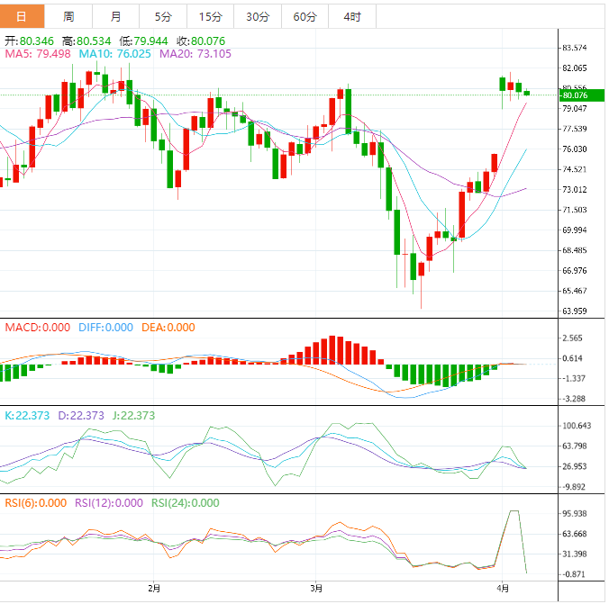 周四盘中,美原油交投于80.08美元/桶附近;油价周三波动不大,尽管美国原油和燃料库存的降幅大于预期,但市场权衡经济前景恶化与美国原油库存下降的预期以及OPEC+产油国的减产计划;交易员们将从本周公布的美国非农就业数据中寻找更广泛的经济趋势线索,因疲软经济数据引发了对需求的担忧。