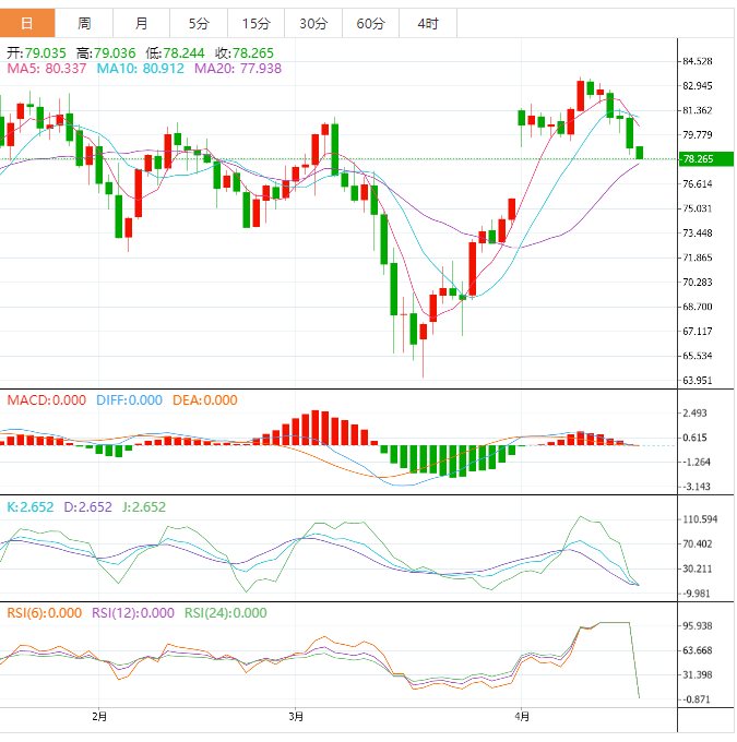 WTI原油再创两周低点,至78.30美元左右,在周四欧市盘前连续第四天下跌。在此过程中,能源基准切入100日指数移动平均线(EMA),同时也接近3月20日起的向上倾斜支撑线。