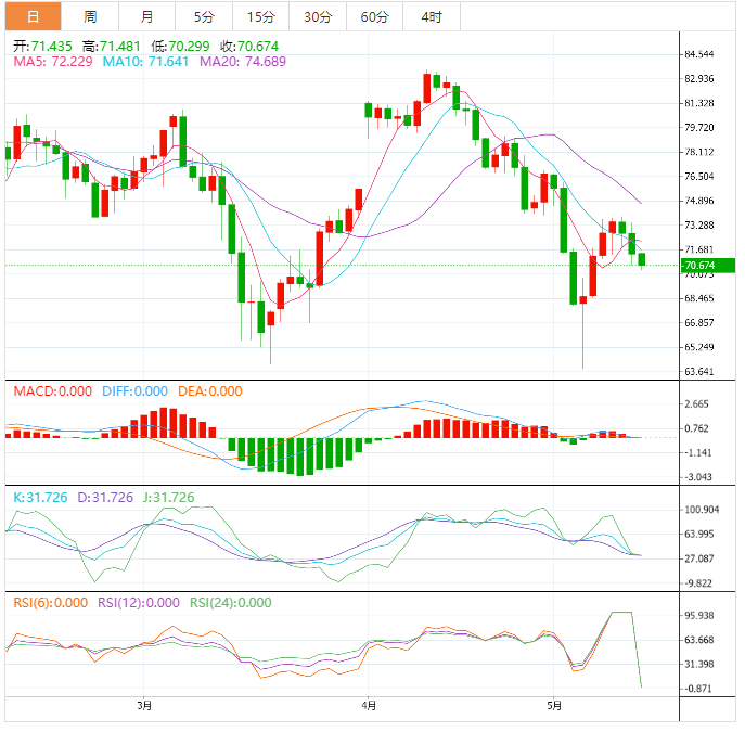 WTI原油自一周高位回落后,连续第三天承压,周五早间在71.10美元附近刷新盘中底部。