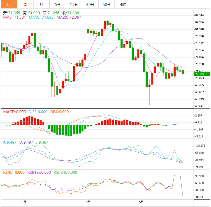 WTI原油期货在亚洲市场的交易中,在72.00美元以下来回波动。由于投资者正在等待美国债务上限谈判的结果,预计油价将继续盘整。