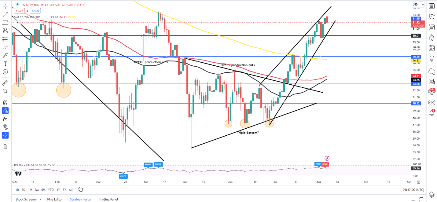 2023年,美国原油出口激增,推低了欧洲和亚洲的价格,这可能是欧佩克+持续减产的关键原因,因为这些城镇的主要参与者似乎在价格上进行拉锯战。人们似乎担心供应过剩,这可能解释了沙特王国宣布延长减产的原因。然而,尽管如此,油价似乎对欧佩克+成员国的决定更加敏感。积极的一面是,欧佩克+部长级小组周五举行会议,由于沙特的减产和最近油价的上涨,WTI在7月份上涨了+-16%,保持了政策不变。