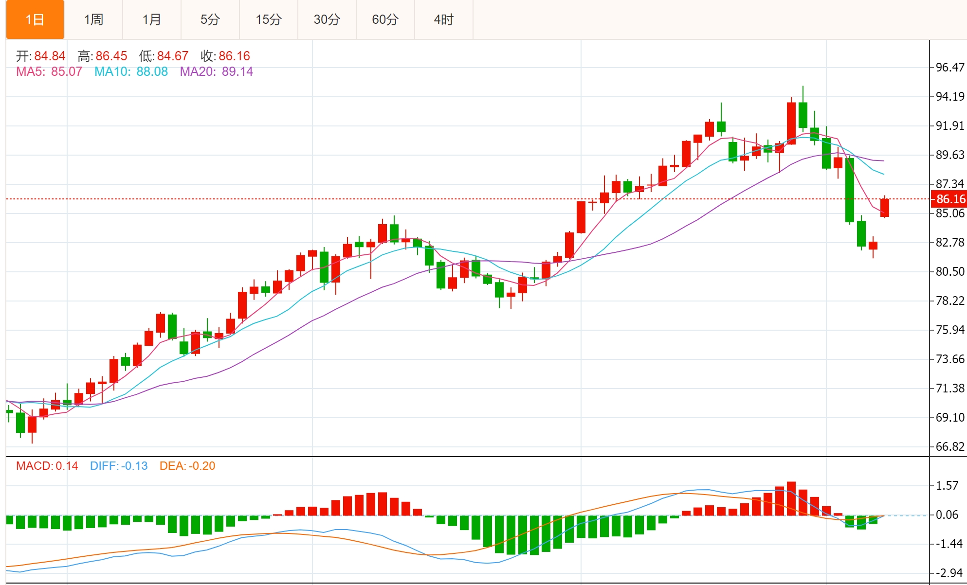 周一亚盘,西德克萨斯中介(WTI)原油价格上涨逾4%,至三天来的最高水平,周一亚洲时段短暂收复85美元关口。