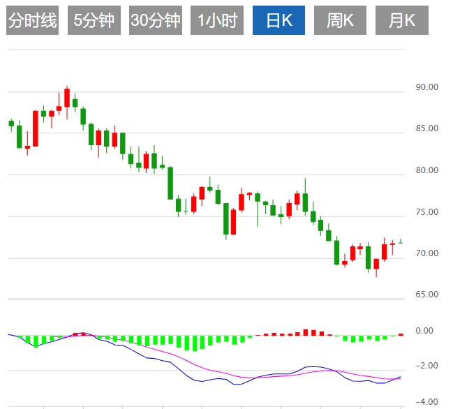 今日预期交易区间在70.50支撑和73.73阻力之间。