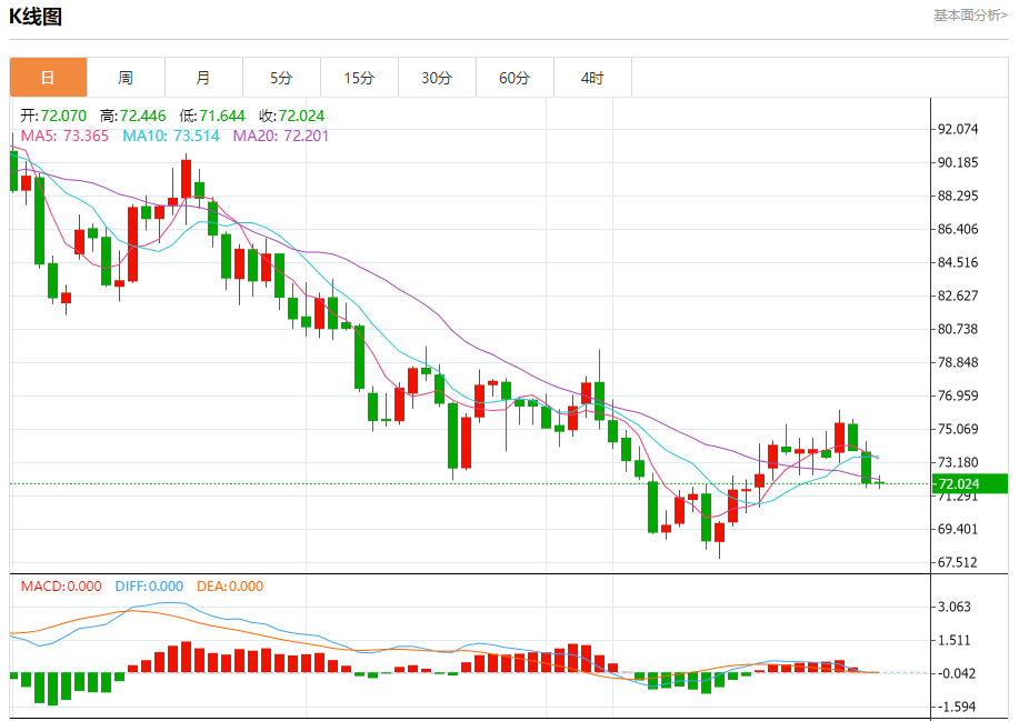技术点评:跌破72.75,为空头信号,向下的目标将会是71.15。