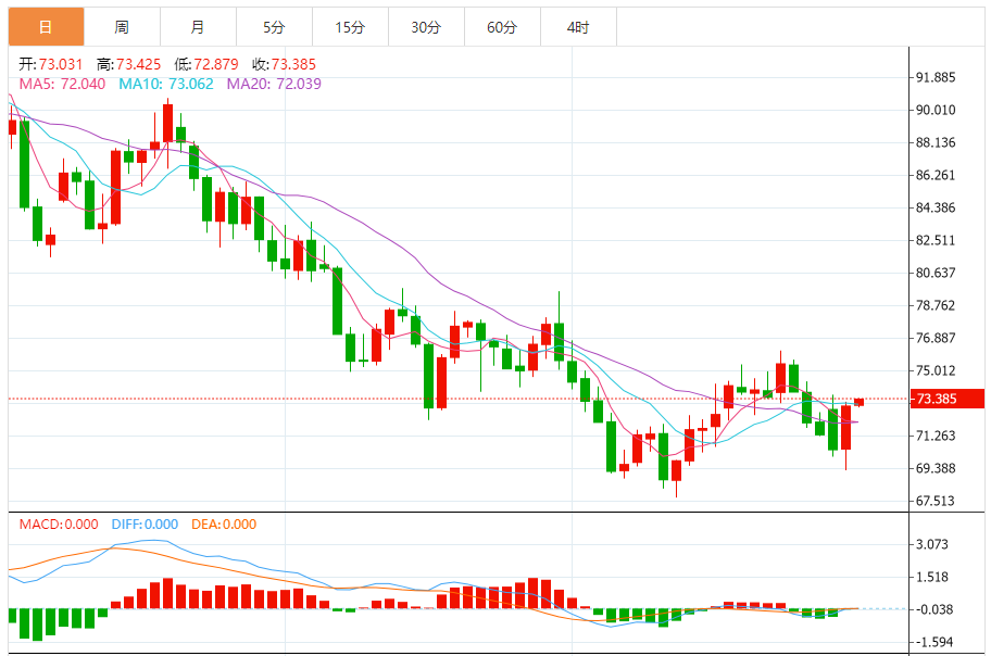今天的预期交易区间:在71.00支撑和74.60阻力之间。