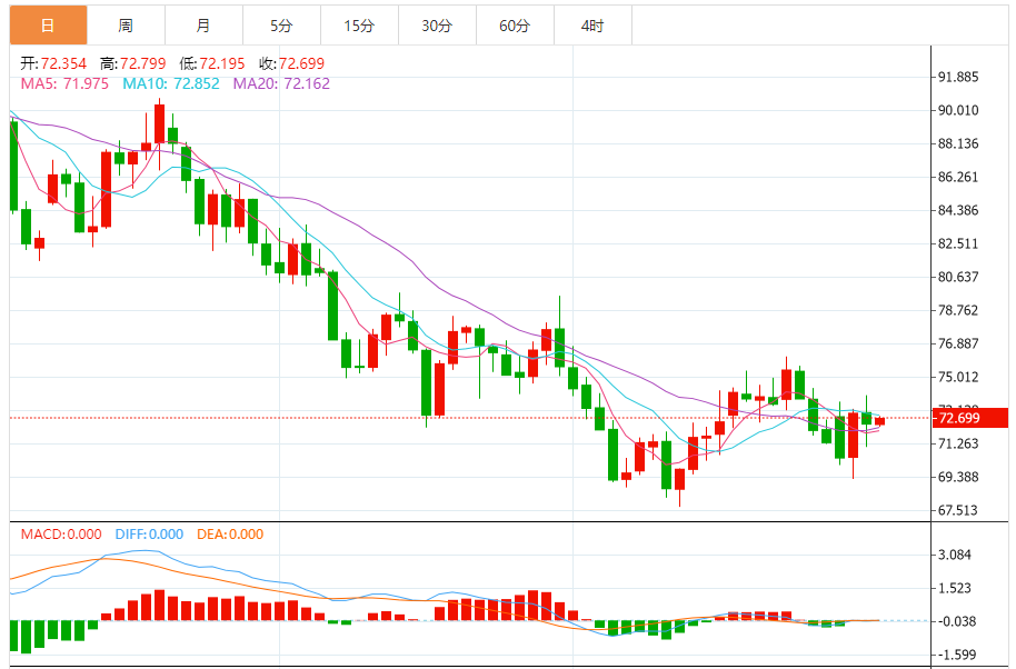 今天的预期交易区间:在70.70支撑和74.40阻力之间。