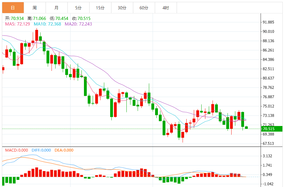今天的预期交易区间:在69.00支撑和72.00阻力之间。