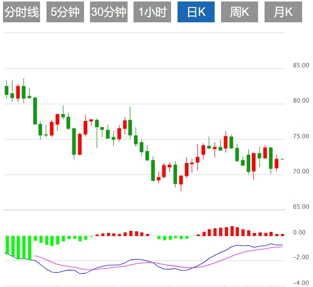 周三欧盘,西德克萨斯中质原油(WTI)连续第二天吸引一些买家,尽管缺乏跟进,并且在欧洲时段前半段仍低于隔夜波动高点。该商品目前的交易价格略低于72.00中,当日上涨近0.35%。