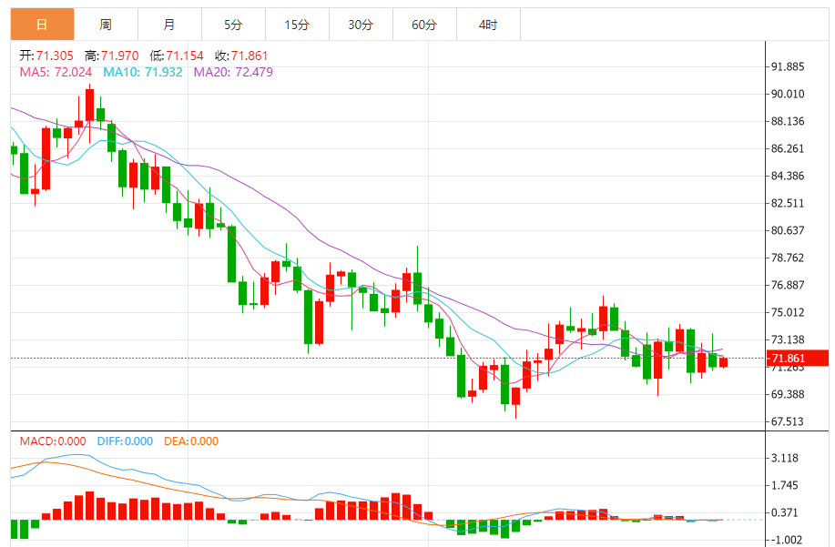 今天的预期交易区间:在69.80支撑和72.70阻力之间。