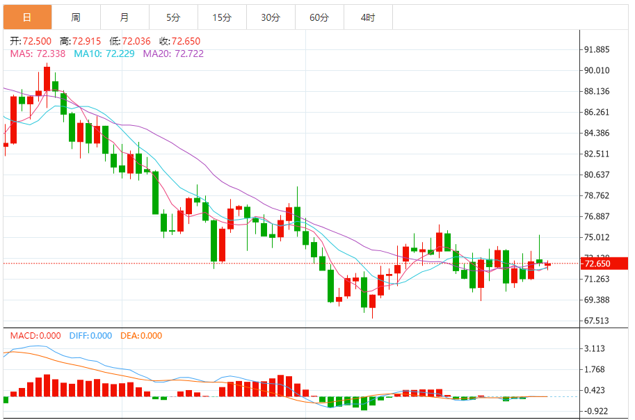 今天的预期交易区间:在71.00支撑和74.00阻力之间
