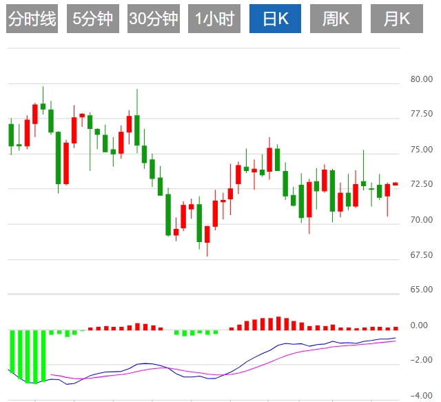 周四亚市早盘,油价进一步上涨,交投于72.92附近,周三探底回升,早些时候一度因美元持续走强刷新逾一个月高位,美原油一度下跌近2%,创近一周新低至70.49美元/桶,但由于严寒天气扰乱了美国部分石油生产,多头展开反扑,扭转了跌势。
