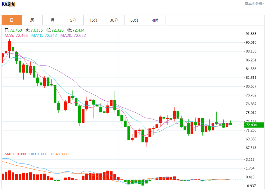 技术点评:在72.50之上,为多头信号,向上的目标位为73.55。