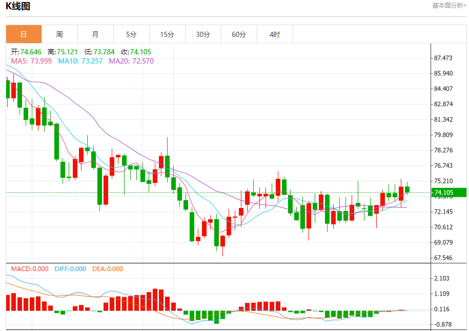 技术点评:跌破74.60,为空头信号,向下的目标将会是73.75。