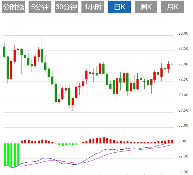 周四亚盘,美国原油基准西德克萨斯中质原油(WTI)周四交投于75.15美元左右。由于美元需求恢复,WTI原油价格当日小幅下跌0.37%。然而,美国原油产量下滑、中国新的刺激措施以及地缘政治紧张局势可能会限制黑金的下行空间。