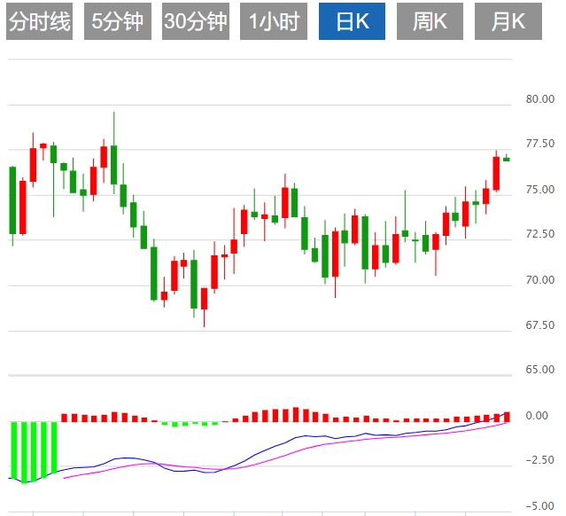 周五亚盘,油价高位震荡,现交投于76.98美元附近,日内跌破77美元关口。周四(1月25日)由于美国经济数据显示2023年第四季度增长快于预期导致市场乐观情绪,并降低了美联储降息预期,同时,红海紧张局势持续扰乱全球贸易,油价周四上涨约3%,收于去年12月以来的最高水平。
