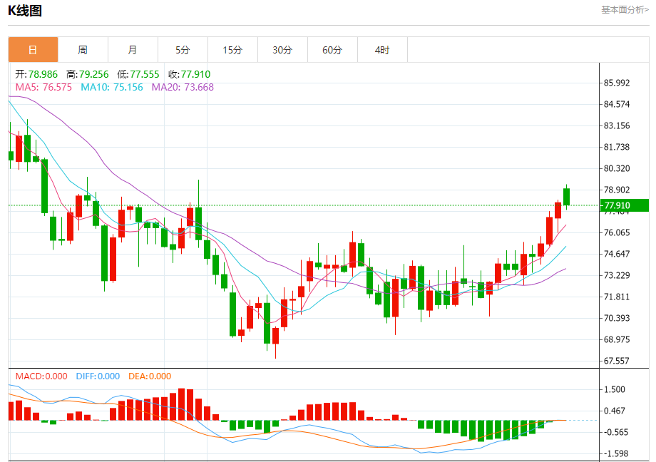 技术点评:77.50附近形成了一个支撑的底部,将带来走势短期内的稳定。