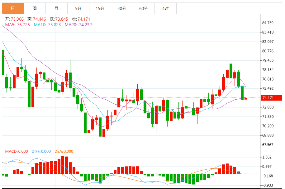 综合来看,原油日内操作思路上建议上方短期关注76.0-77.0一线阻力,下方短期关注73.0-72.0一线支撑。