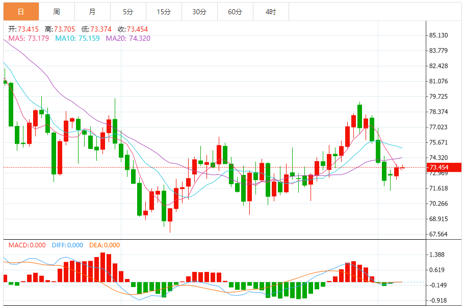 周三(2月7日),美原油价格交投于73.46美元每桶附近,周一油价收出长下影线,在年初成交密集区域获得支撑企稳。