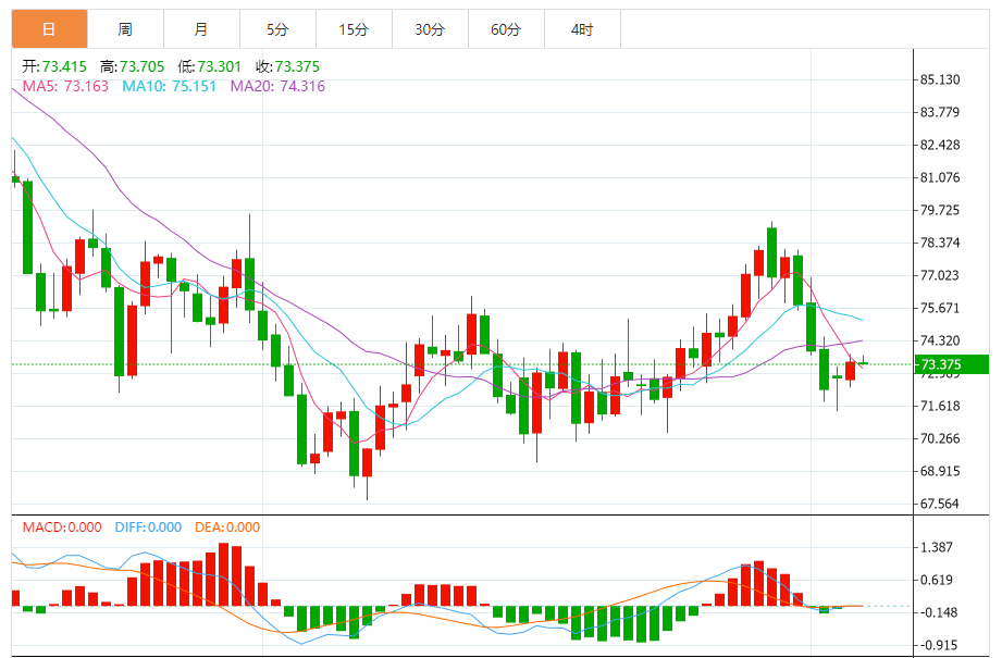 美油、布伦特原油昨日收盘分别为收涨0.9%至73.44美元/桶、收涨1.08%报78.77美元/桶。油价近日的坚挺,是受到技术面支撑、中东局势动荡等影响。