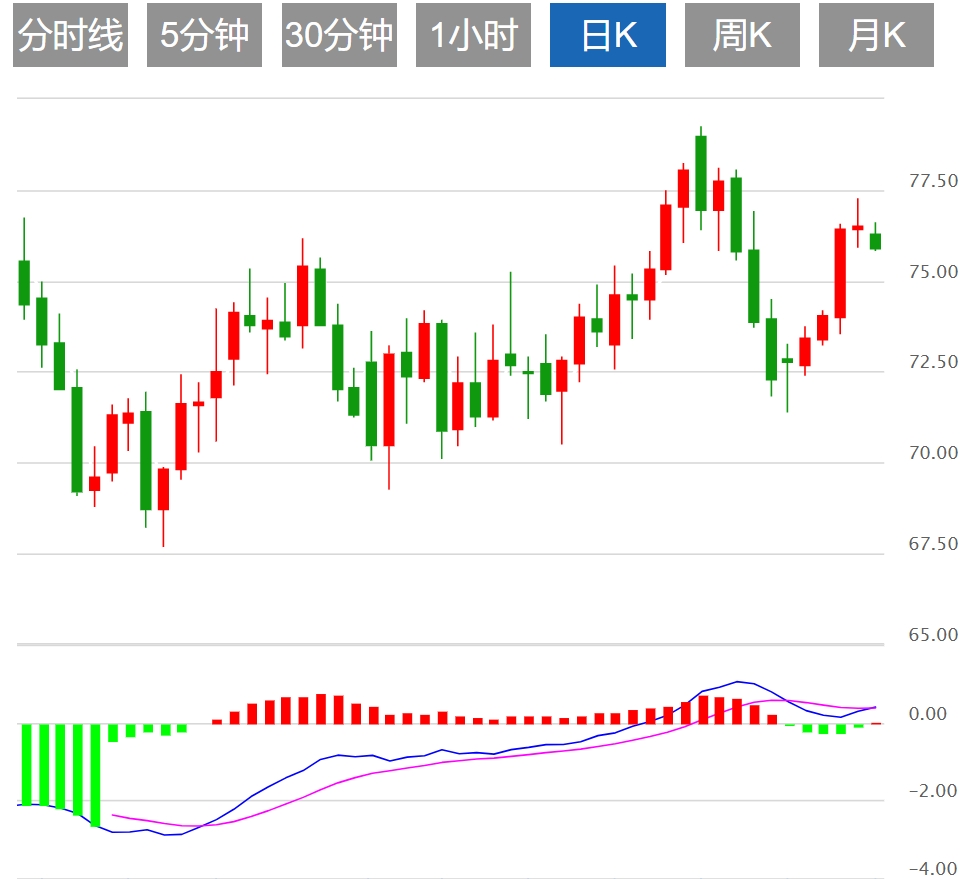 相反,油价必须突破200和100日均线才能缓解下行压力,而升破79.27美元(1月29日高点)和心理水平80美元才能释放继续上涨的信号。
